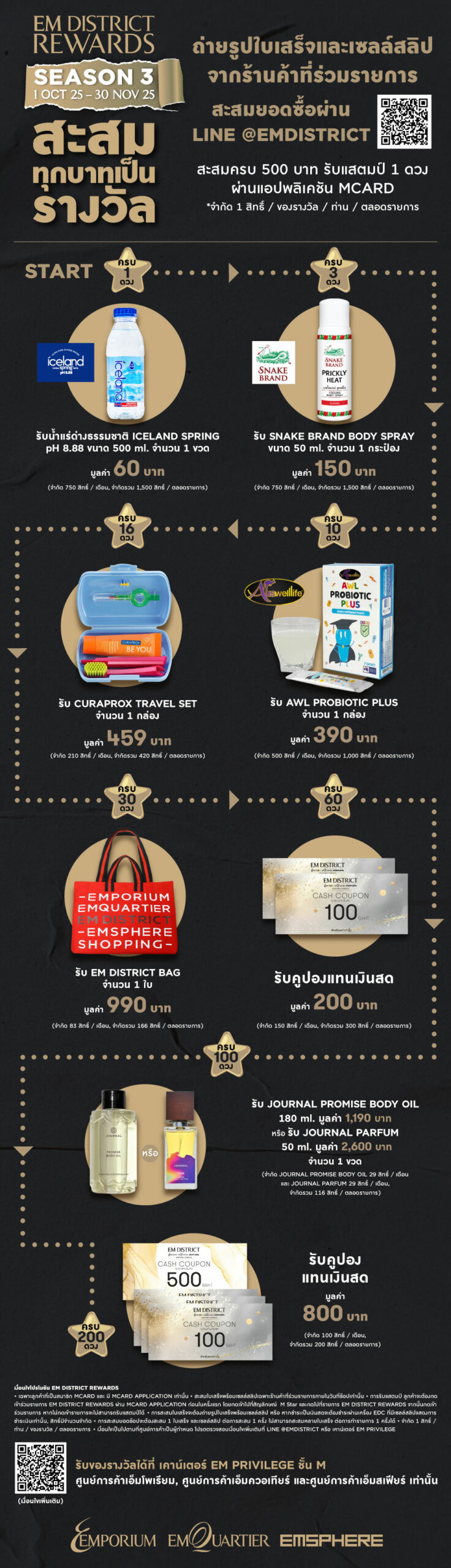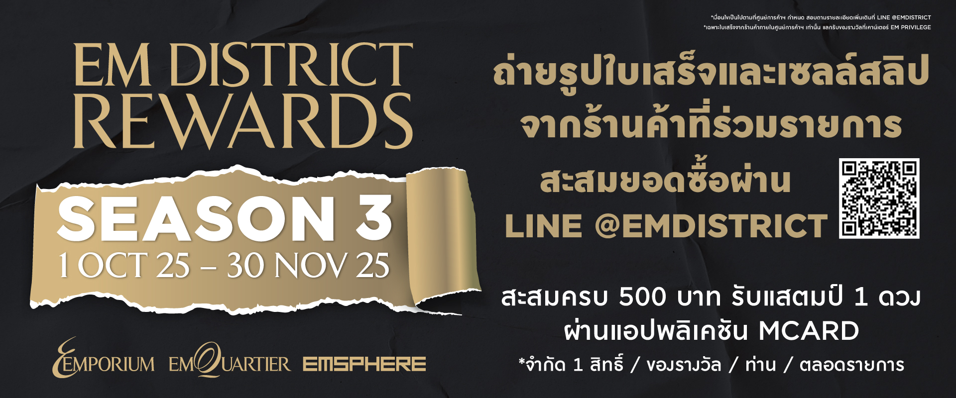 - สอบถามเงื่อนไขเพิ่มเติมที่ Line @EMDISTRICT หรือ เคาน์เตอร์ EM PRIVILEGE