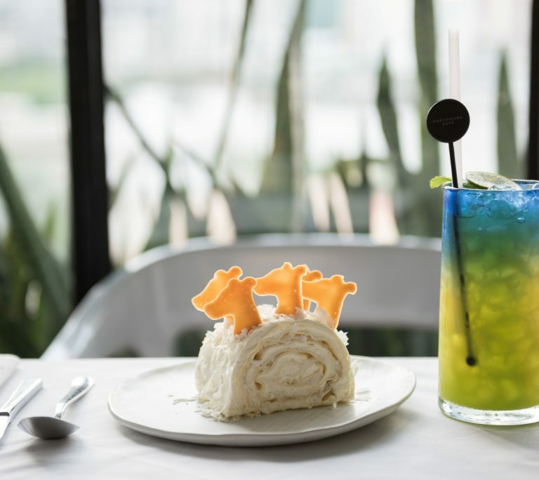 คอนเซ็ปอาหารสะท้อน Brand Style ของ Greyhound Café คือ “Simple with Creative Twist” ทั้งวัตถุดิบ และรสชาติ ที่นำเสนอในรูปแบบที่ใส่ความคิดสร้างสรรค์ เมนูของ Greyhound Café ส่วนมากจะเป็นเมนู Thai- Asian ซึ่งมีหลากหลายเมนูให้เลือก เป็นที่ชื่นชอบของลูกค้าทั้งไทยและต่างชาติ สูตรเมนูอาหารของเราได้มาจากหลากหลายที่ด้วยกัน บางสูตรได้มาจากคุณยายตุ๋ย (เป็นคุณยายที่มีอยู่จริง) บางสูตรได้จากความหิวกลางดึกจึงเกิดเป็นเมนูใหม่ บางส่วนได้มาจากการเดินทางไปยังสถานที่ต่างๆและเกิดติดใจในความอร่อยจึงนำมาทวิสต์ในรูปแบบของ Greyhound Café ซึ่งจะเห็นได้ว่าทุกๆเมนูของ Greyhound Café จะเต็มไปด้วยเรื่องราว แต่ที่แน่นอนที่สุดคือเรื่องของรสชาติที่รับรองว่าไม่ผิดหวัง